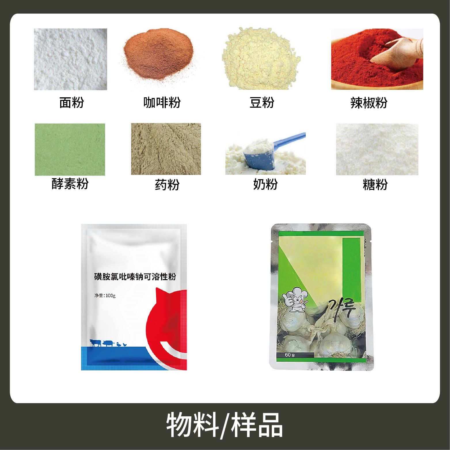 適用于食品、醫(yī)藥、化工、化妝品行業(yè)中顆粒、粉劑、液體、醬料等物品的計(jì)量包裝,如:調(diào)味粉、蛋白質(zhì)粉、營養(yǎng)粉等。