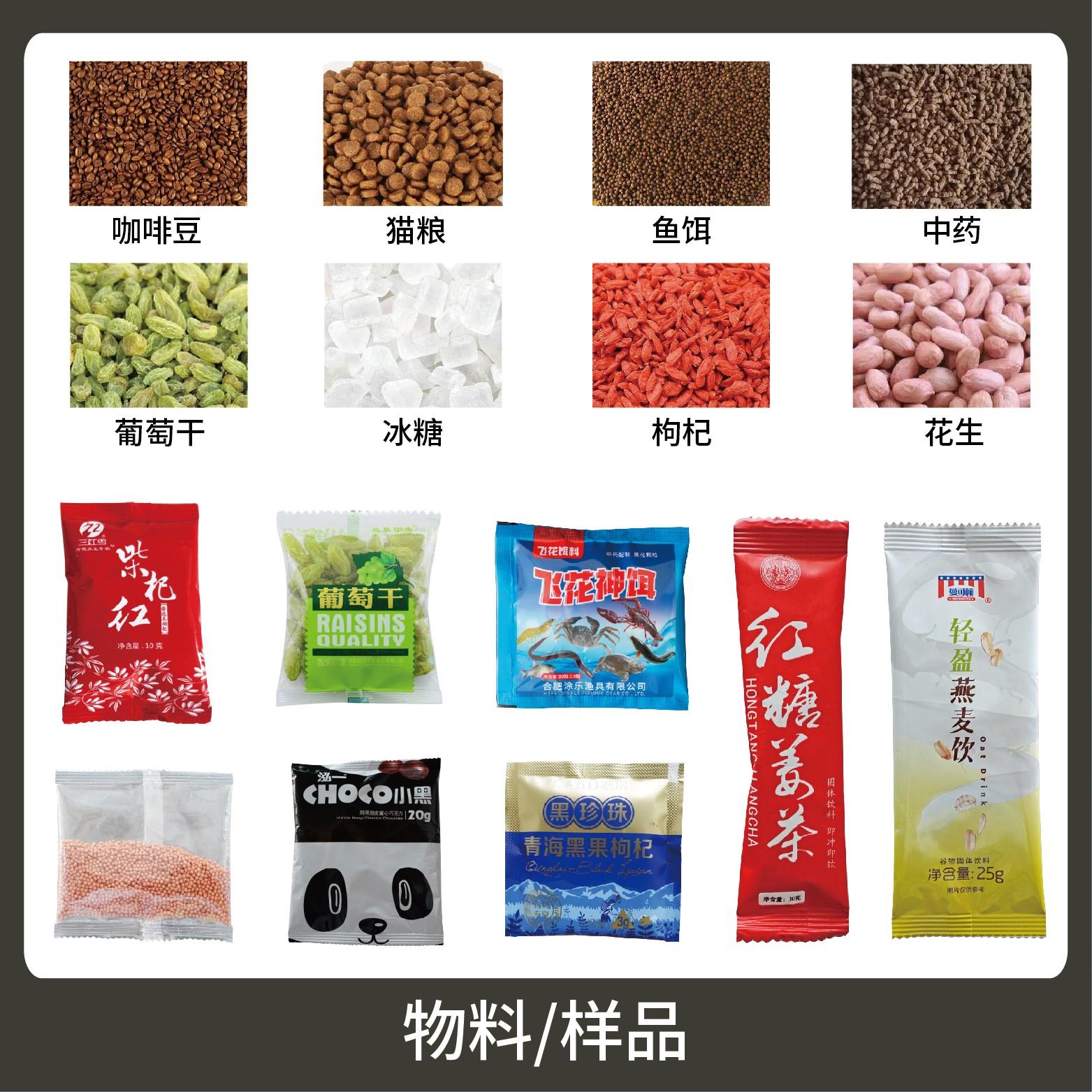 適用于食品、醫(yī)藥、化工、化妝品行業(yè)中顆粒物品的計量包裝,如:干果、果干、咖啡、中藥顆粒等。